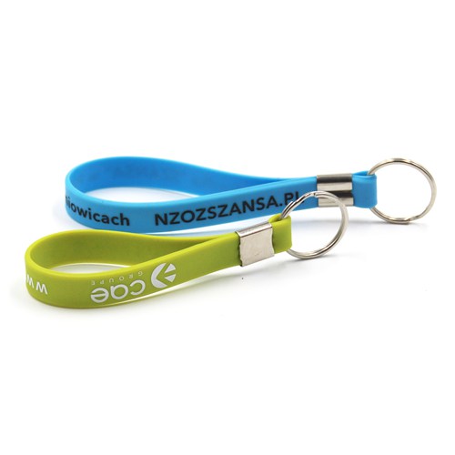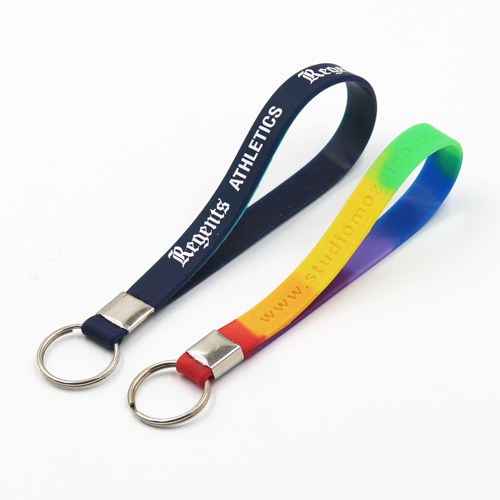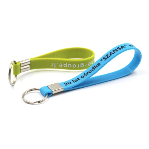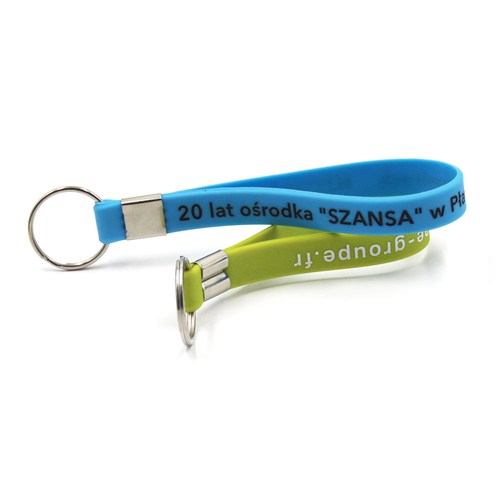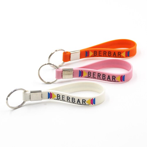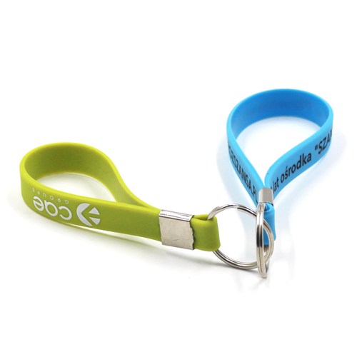 Silicone wristbands keychians are same to usual wristbands, but add a keyring on it. It is useful and convenient for people to find their key easily. Many companies would like to choose them as promotional gift because they are durable.
