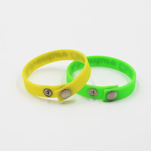 We can make buttons on the wristbands according to your requirement. So one wristband can suit for different people. The button woule be plastic or metal. If you choose printing, we have existed mold. You don't need to pay the mold fee again. Making debossed or emboosed also available as well.