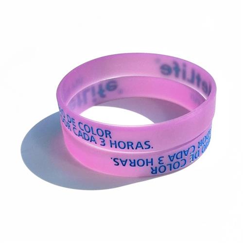 UV silicone wristbands can change different color under the sunshine. The stonger UV radiation, the color darker. So it can remind us to protect ourselves under the UV radiation.