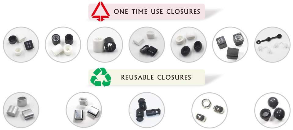 Vatious closures for your reference, can be one time use, reusable, plastic or matal.