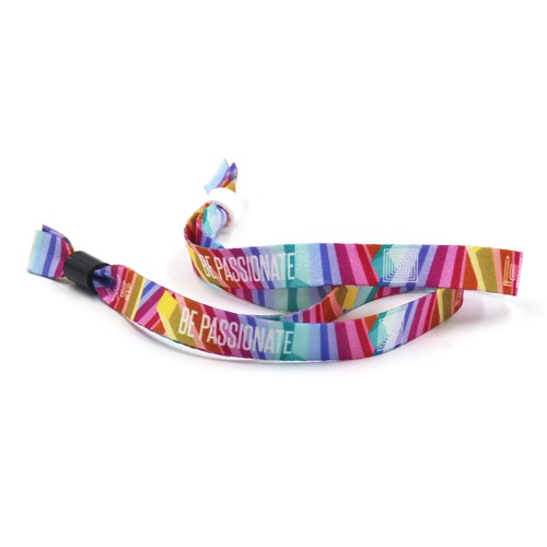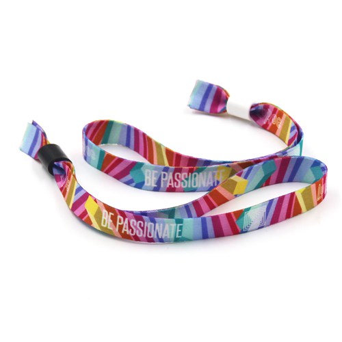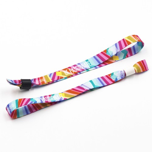 Sublimation-printed fabric wristbands allow you to choose any Pantone card number, giving you the ability to get really creative. And you can choose to print on one side or both sides. Different to woven wristbands, logo with gradient color also available. So, if you want fast delivery and wonderful color, sublimation-printed fabric wristbands will be your best choice.